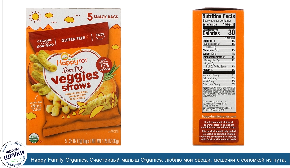 Друзья, если у вас есть отзыв/дополнение/комментарий/вопрос относительно Happy Family Organics, Счастоивый малыш Organics, люблю мои овощи, мешочки с соломкой из нута, органический батат и размарин, 5 пакетов, 0,25 унции (7 г) каждый - напишите его ответом в эту тему (это будет полезно всему сообществу в целом и вам в отдельности).