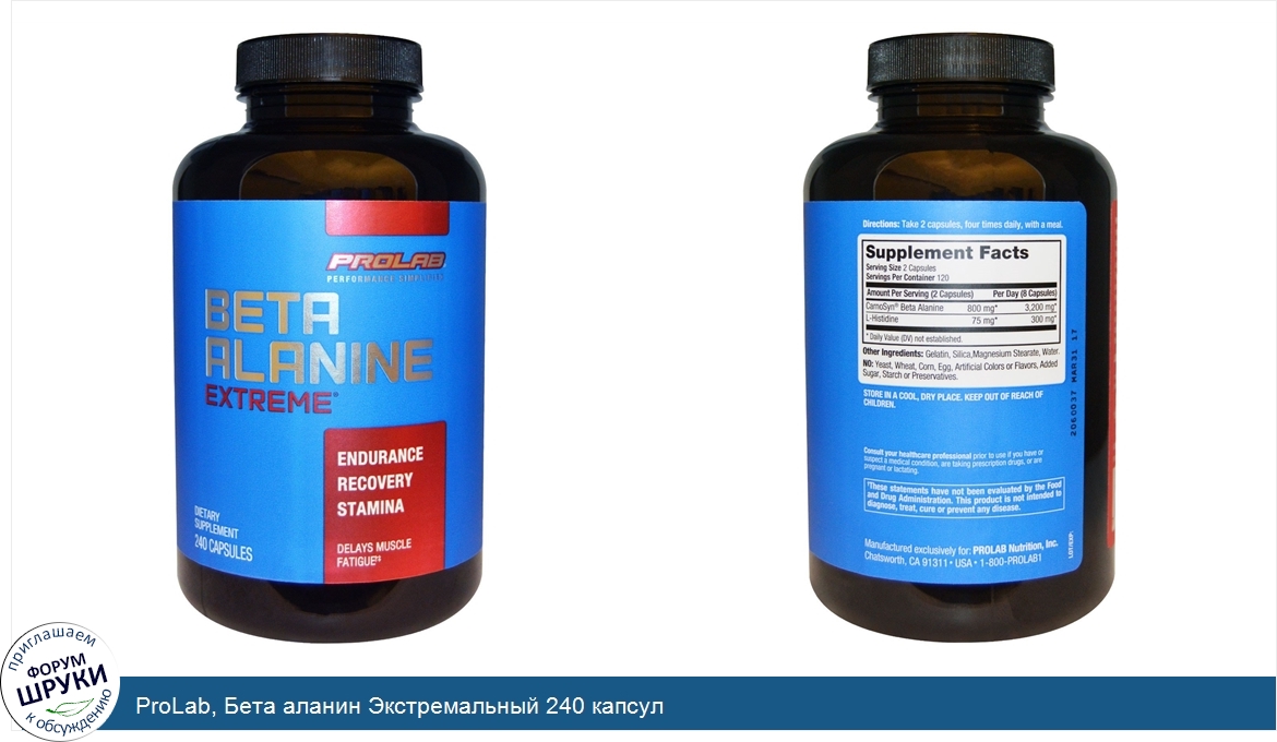 Друзья, если у вас есть отзыв/дополнение/комментарий/вопрос относительно ProLab, Бета аланин Экстремальный 240 капсул - напишите его ответом в эту тему (это будет полезно всему сообществу в целом и вам в отдельности).