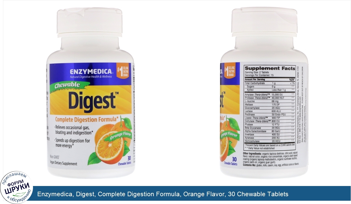 Друзья, если у вас есть отзыв/дополнение/комментарий/вопрос относительно Enzymedica, Digest, Complete Digestion Formula, Orange Flavor, 30 Chewable Tablets - напишите его ответом в эту тему (это будет полезно всему сообществу в целом и вам в отдельности).