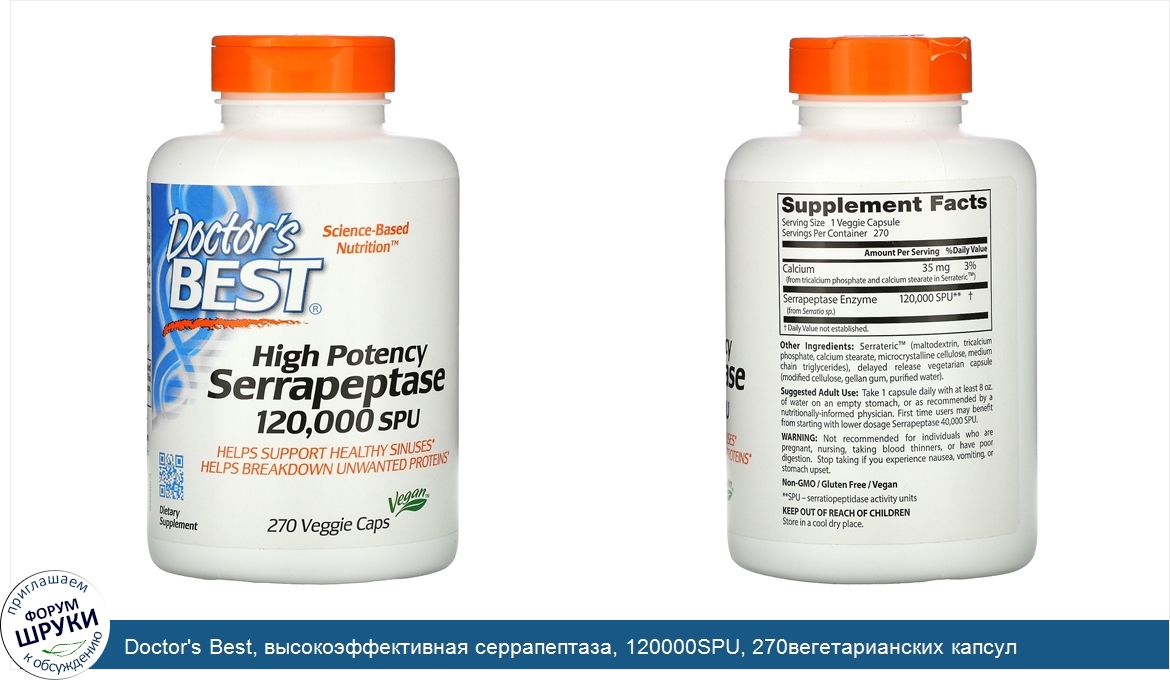 Друзья, если у вас есть отзыв/дополнение/комментарий/вопрос относительно Doctor's Best, высокоэффективная серрапептаза, 120000SPU, 270вегетарианских капсул - напишите его ответом в эту тему (это будет полезно всему сообществу в целом и вам в отдельности).