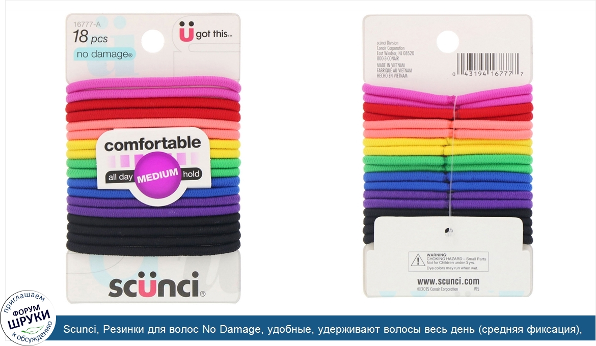 Друзья, если у вас есть отзыв/дополнение/комментарий/вопрос относительно Scunci, Резинки для волос No Damage, удобные, удерживают волосы весь день (средняя фиксация), яркие, 18штук - напишите его ответом в эту тему (это будет полезно всему сообществу в целом и вам в отдельности).