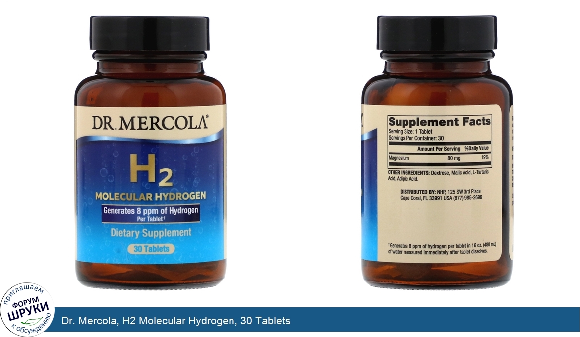 Generates 8 ppm of Hydrogen Per Tablet†. Dietary Supplement. Dr. Mercola has been providing quality products since 2001. †Generates 8 ppm of hydrogen per tablet in 16 oz. (480 ml) of water measured immediately af...