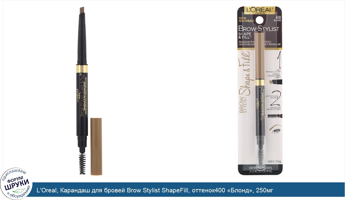 L'Oreal, Карандаш для бровей Brow Stylist ShapeFill, оттенок400 «Блонд», 250мг
