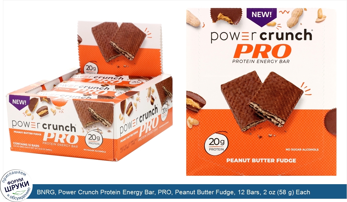 BNRG, Power Crunch Protein Energy Bar, PRO, Peanut Butter Fudge, 12 Bars, 2 oz (58 g) Each