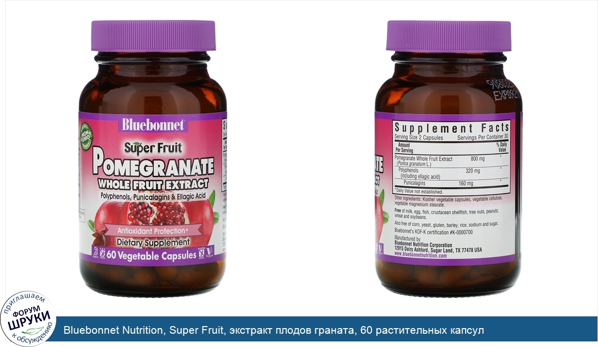 ru Bluebonnet Nutrition, Super Fruit, экстракт плодов граната, 60 растительных капсул