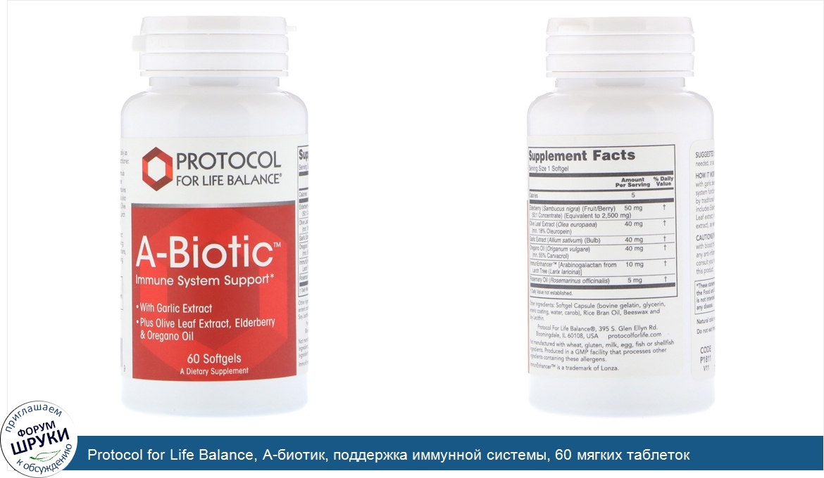 [DESCRIPT]With Garlic Extract. Plus Olive Leaf Extract, Elderberry Oregano Oil. A Dietary Supplement. How It Works: A-Biotic™ is a botanical formula with garlic designed to support healthy immune system function. Garlic has been used for centuries by traditional herbalists. The A-Biotic™ formula also includes Elderberry concentrate, standardized Olive Leaf extract, ImmunEnhancer™ (a proprietary Larch extract), as well as oregano and rosemary oils.[/DESCRIPT]... (описание дополняется)