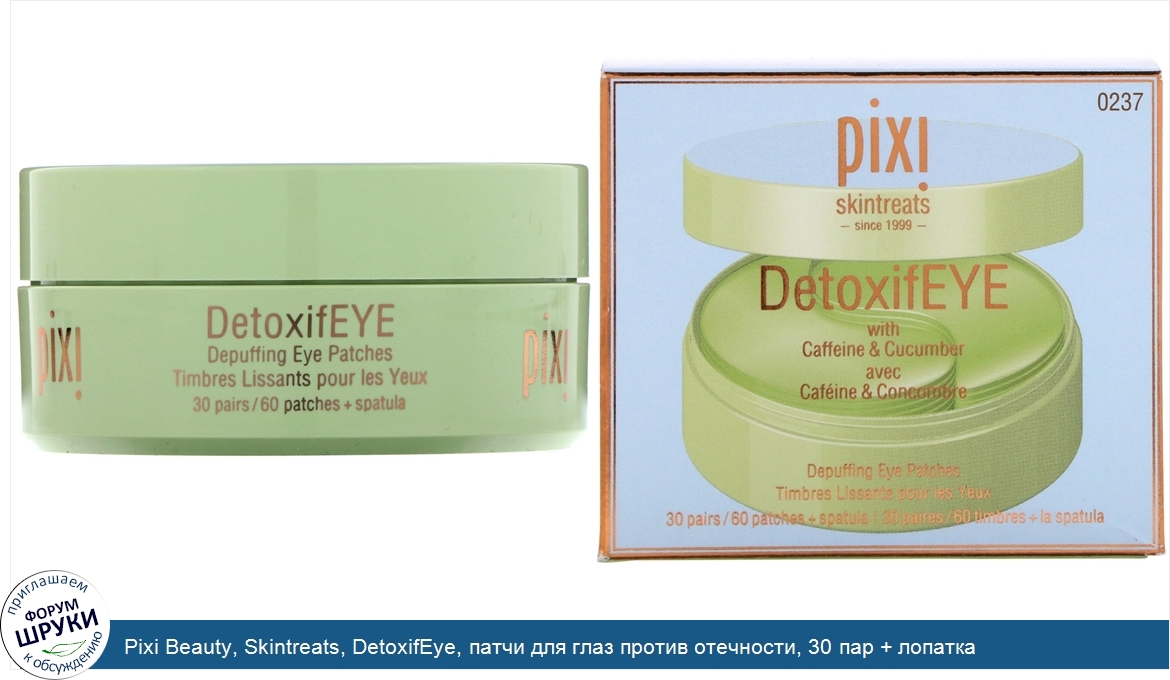 ru Pixi Beauty, Skintreats, DetoxifEye, патчи для глаз против отечности, 30 пар + лопатка