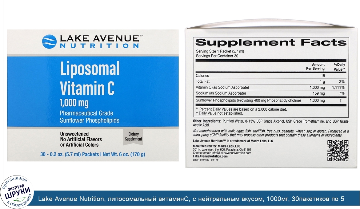 Друзья, если у вас есть отзыв/дополнение/комментарий/вопрос относительно Lake Avenue Nutrition, липосомальный витаминC, с нейтральным вкусом, 1000мг, 30пакетиков по 5,7мл (0,2унции) - напишите его ответом в эту тему (это будет полезно всему сообществу в целом и вам в отдельности).