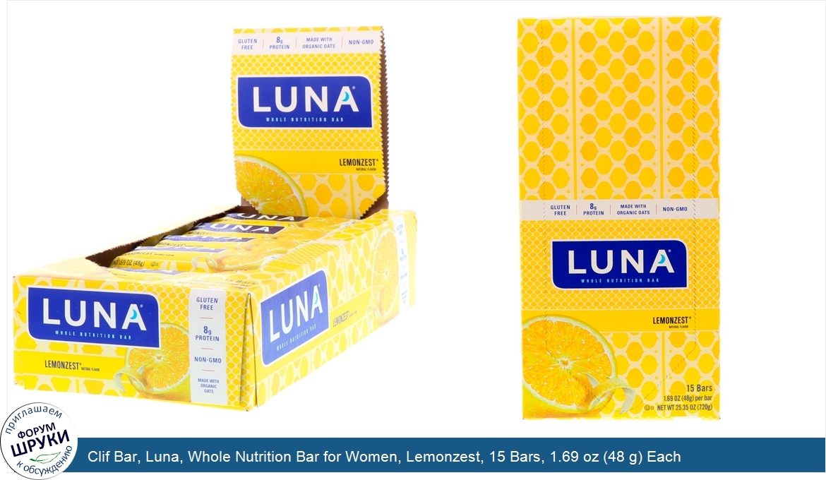 Clif Bar, Luna, Whole Nutrition Bar for Women, Lemonzest, 15 Bars, 1.69 oz (48 g) Each