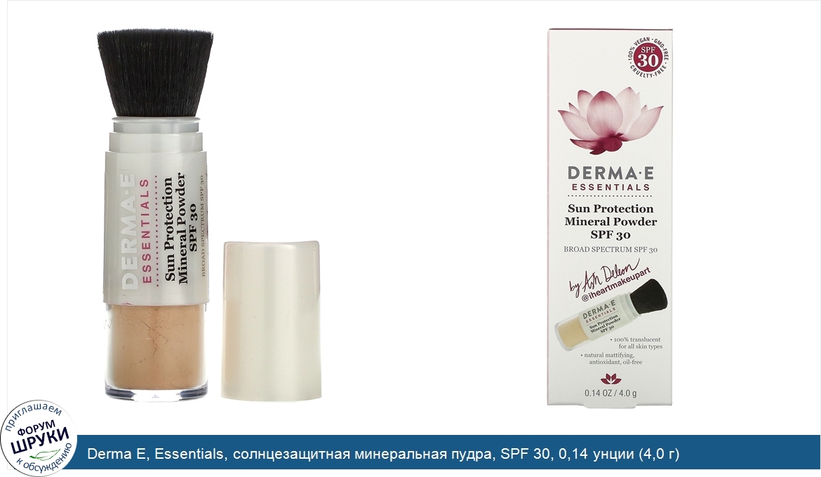 Друзья, если у вас есть отзыв/дополнение/комментарий/вопрос относительно Derma E, Essentials, солнцезащитная минеральная пудра, SPF 30, 0,14 унции (4,0 г) - напишите его ответом в эту тему (это будет полезно всему сообществу в целом и вам в отдельности).