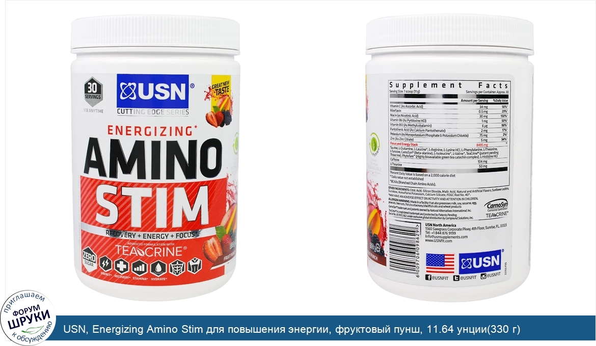 USN, Energizing Amino Stim для повышения энергии, фруктовый пунш, 11.64 унции(330 г)
