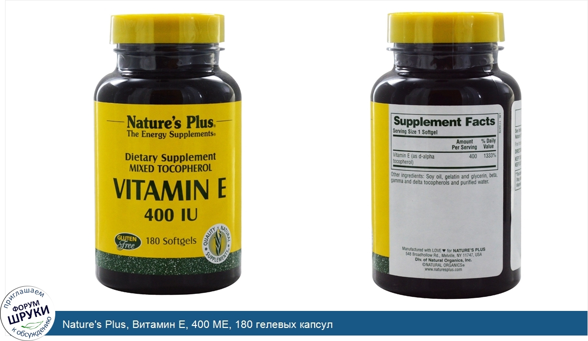 Друзья, если у вас есть отзыв/дополнение/комментарий/вопрос относительно Nature's Plus, Витамин E, 400 МЕ, 180 гелевых капсул - напишите его ответом в эту тему (это будет полезно всему сообществу в целом и вам в отдельности).