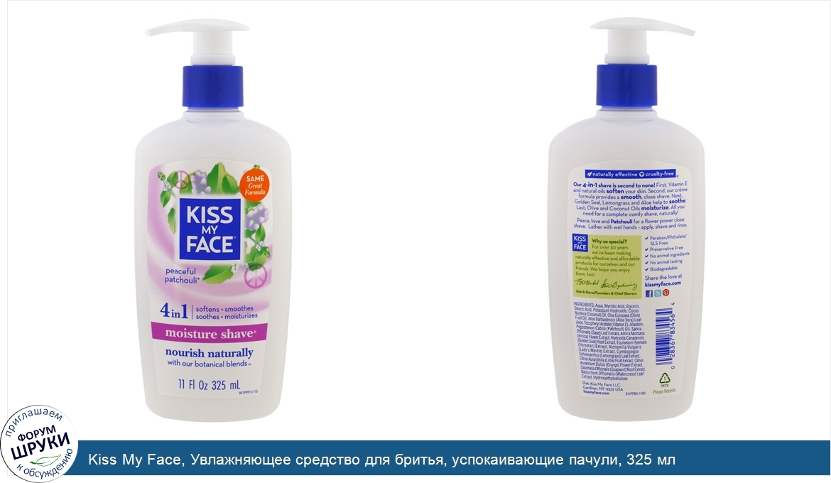Друзья, если у вас есть отзыв/дополнение/комментарий/вопрос относительно Kiss My Face, Увлажняющее средство для бритья, успокаивающие пачули, 325 мл - напишите его ответом в эту тему (это будет полезно всему сообществу в целом и вам в отдельности).
