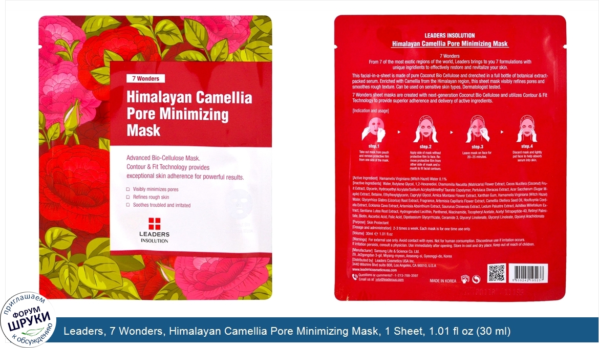 Друзья, если у вас есть отзыв/дополнение/комментарий/вопрос относительно Leaders, 7 Wonders, Himalayan Camellia Pore Minimizing Mask, 1 Sheet, 1.01 fl oz (30 ml) - напишите его ответом в эту тему (это будет полезно всему сообществу в целом и вам в отдельности).