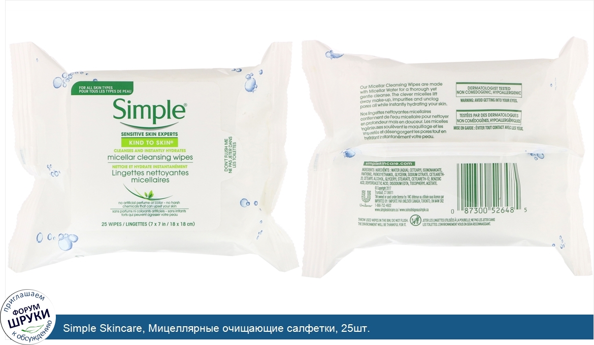 Друзья, если у вас есть отзыв/дополнение/комментарий/вопрос относительно Simple Skincare, Мицеллярные очищающие салфетки, 25шт. - напишите его ответом в эту тему (это будет полезно всему сообществу в целом и вам в отдельности).