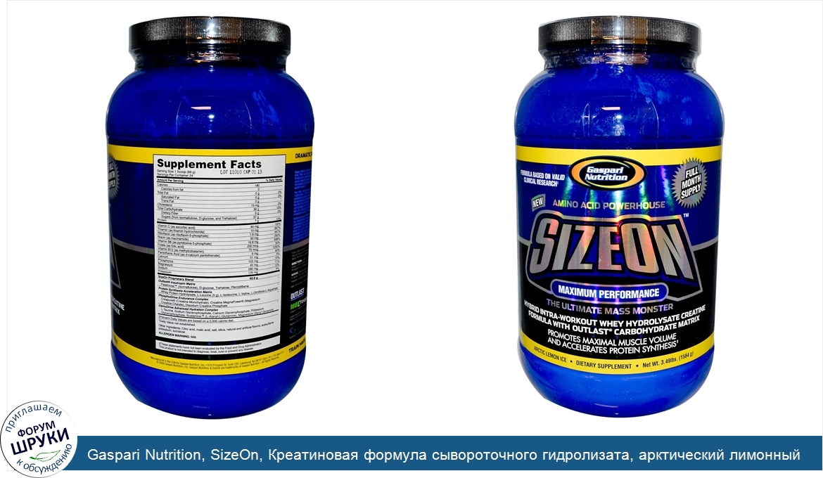 ru Gaspari Nutrition, SizeOn, Креатиновая формула сывороточного гидролизата, арктический лимонный лед, 3,49 ф. (1584 г)