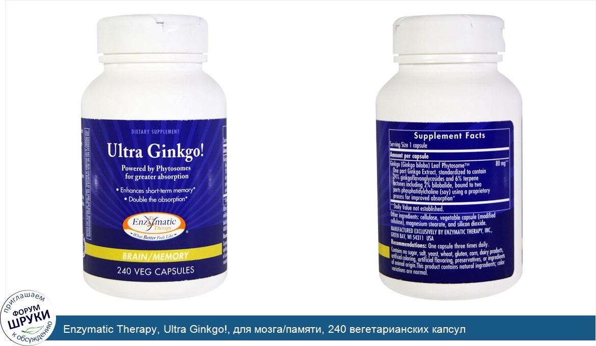 Друзья, если у вас есть отзыв/дополнение/комментарий/вопрос относительно Enzymatic Therapy, Ultra Ginkgo!, для мозга/памяти, 240 вегетарианских капсул - напишите его ответом в эту тему (это будет полезно всему сообществу в целом и вам в отдельности).