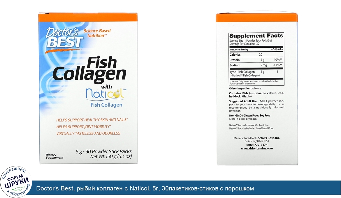 Друзья, если у вас есть отзыв/дополнение/комментарий/вопрос относительно Doctor's Best, рыбий коллаген с Naticol, 5г, 30пакетиков-стиков с порошком - напишите его ответом в эту тему (это будет полезно всему сообществу в целом и вам в отдельности).