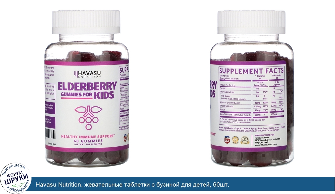 Havasu Nutrition, жевательные таблетки с бузиной для детей, 60шт.