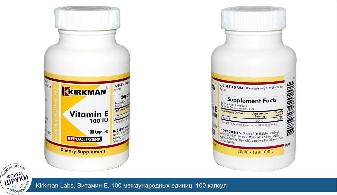 Друзья, если у вас есть отзыв/дополнение/комментарий/вопрос относительно Kirkman Labs, Витамин E, 100 международных единиц, 100 капсул - напишите его ответом в эту тему (это будет полезно всему сообществу в целом и вам в отдельности).