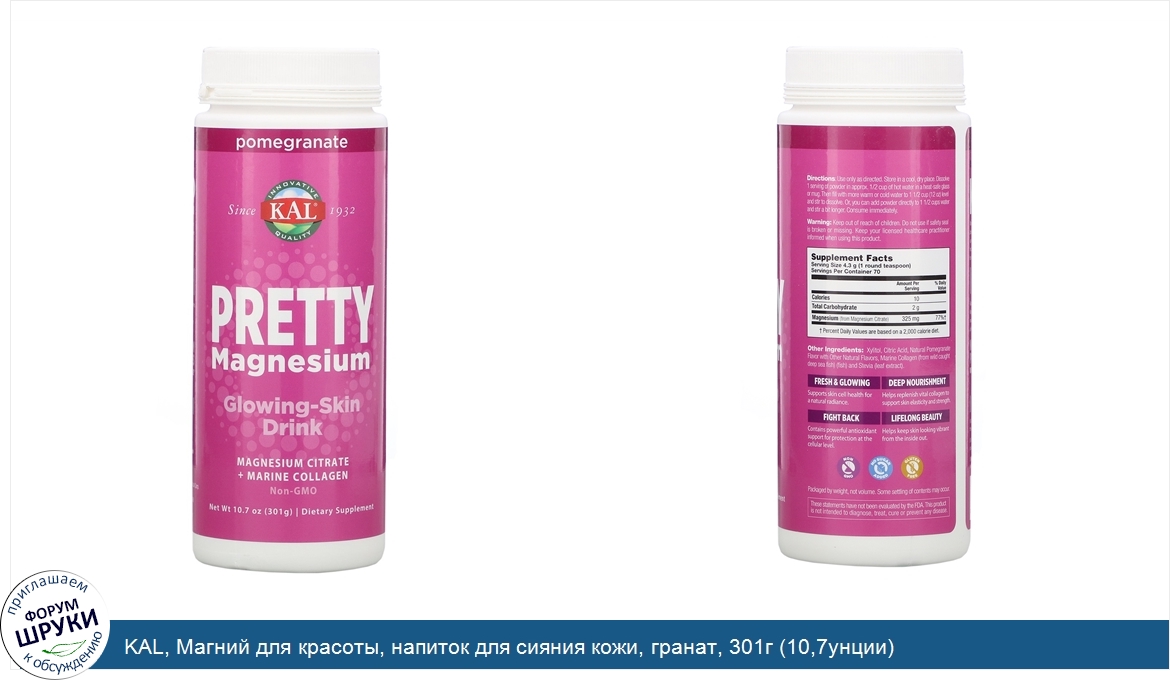 KAL, Магний для красоты, напиток для сияния кожи, гранат, 301г (10,7унции)