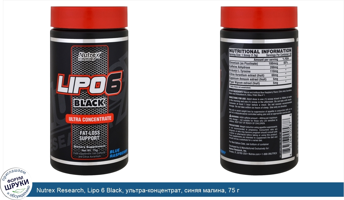 Друзья, если у вас есть отзыв/дополнение/комментарий/вопрос относительно Nutrex Research, Lipo 6 Black, ультра-концентрат, синяя малина, 75 г - напишите его ответом в эту тему (это будет полезно всему сообществу в целом и вам в отдельности).