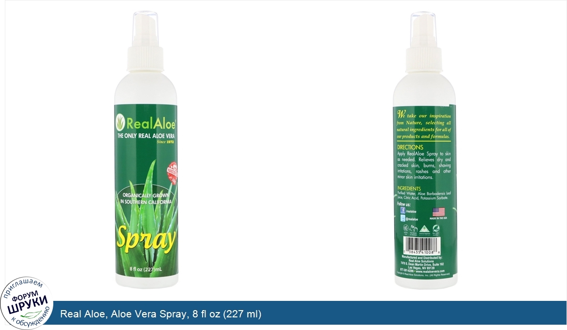 Друзья, если у вас есть отзыв/дополнение/комментарий/вопрос относительно Real Aloe, Aloe Vera Spray, 8 fl oz (227 ml) - напишите его ответом в эту тему (это будет полезно всему сообществу в целом и вам в отдельности).