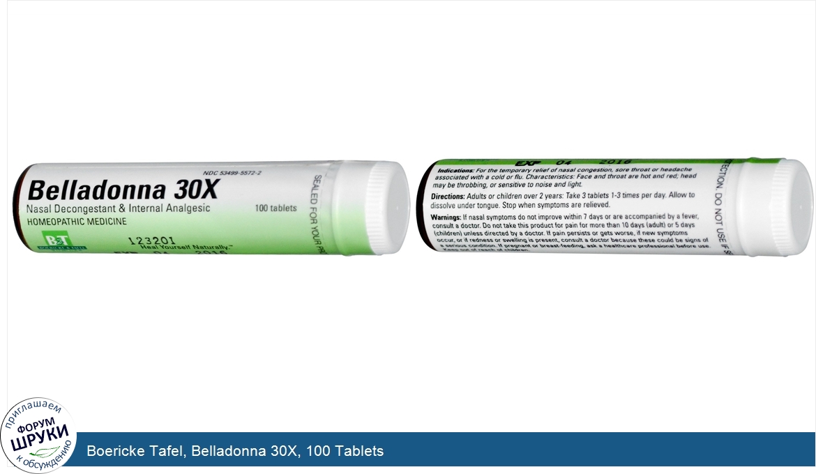 Друзья, если у вас есть отзыв/дополнение/комментарий/вопрос относительно Boericke Tafel, Belladonna 30X, 100 Tablets - напишите его ответом в эту тему (это будет полезно всему сообществу в целом и вам в отдельности).
