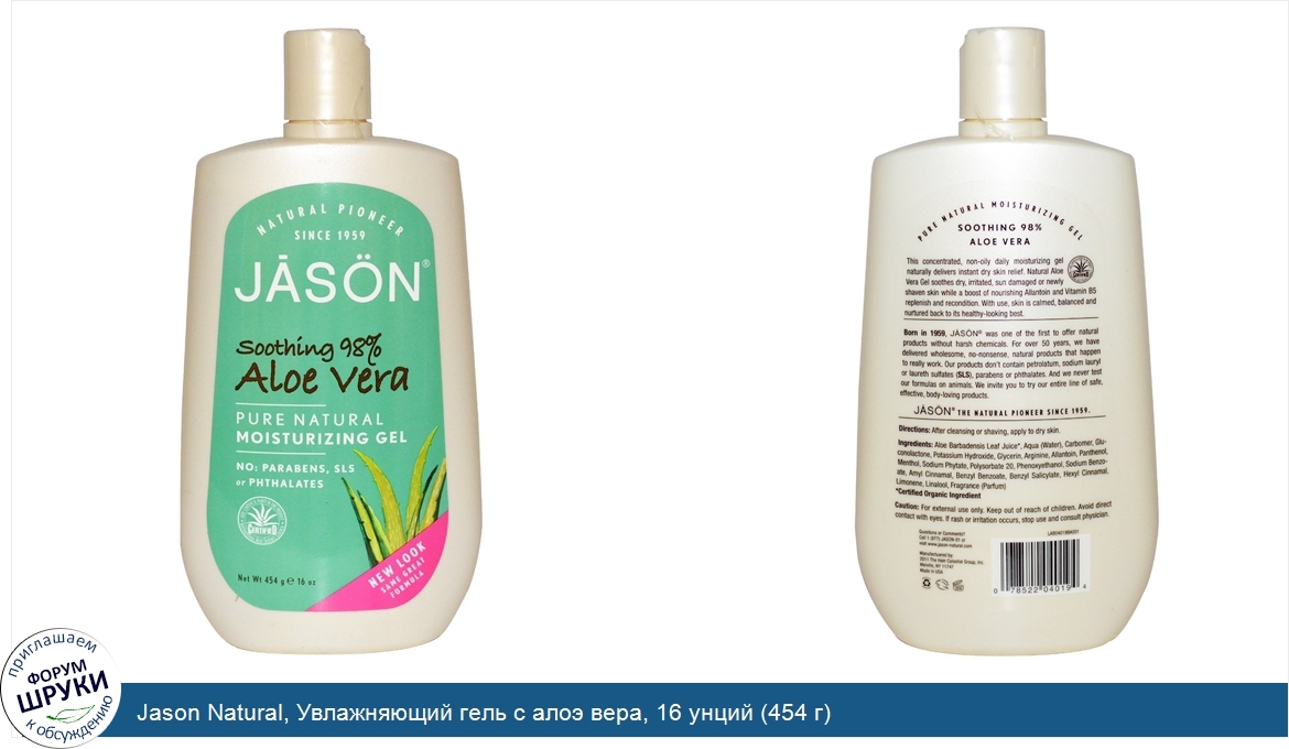 [DESCRIPT]Soothing 98%. Certified Aloe Content Purity in this Product - International Aloe Science Council. No Parabens, SLS, Petrolatum, Artificial Colors or Phthalates. This concentrated, non-oily daily moisturizing gel delivers instant dry skin relief. Aloe Vera Gel soothes dry, irritated, sun damaged or newly shaven skin while a boost of nourishing Allantoin and Vitamin B5 replenish and recondition. With use, skin is calmed, balanced and nurtured back to its healthy-looking best. Born in 1959, Jason was one of the first to offer personal care products without harsh chemicals. For over 50 years, we have delivered safe, wholesome, no-nonsense products that happen to really work. Our formulas don't contain petrolatum, sodium lauryl or laureth sulfates (SLS), parabens or phthalates. And we never test on animals. We invite you to try our entire line of safe, effective, body-loving products.[/DESCRIPT]... (описание дополняется)