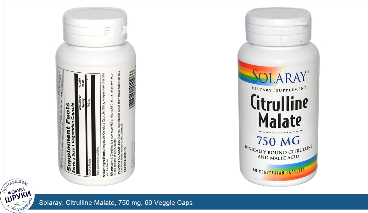 Друзья, если у вас есть отзыв/дополнение/комментарий/вопрос относительно Solaray, Citrulline Malate, 750 mg, 60 Veggie Caps - напишите его ответом в эту тему (это будет полезно всему сообществу в целом и вам в отдельности).
