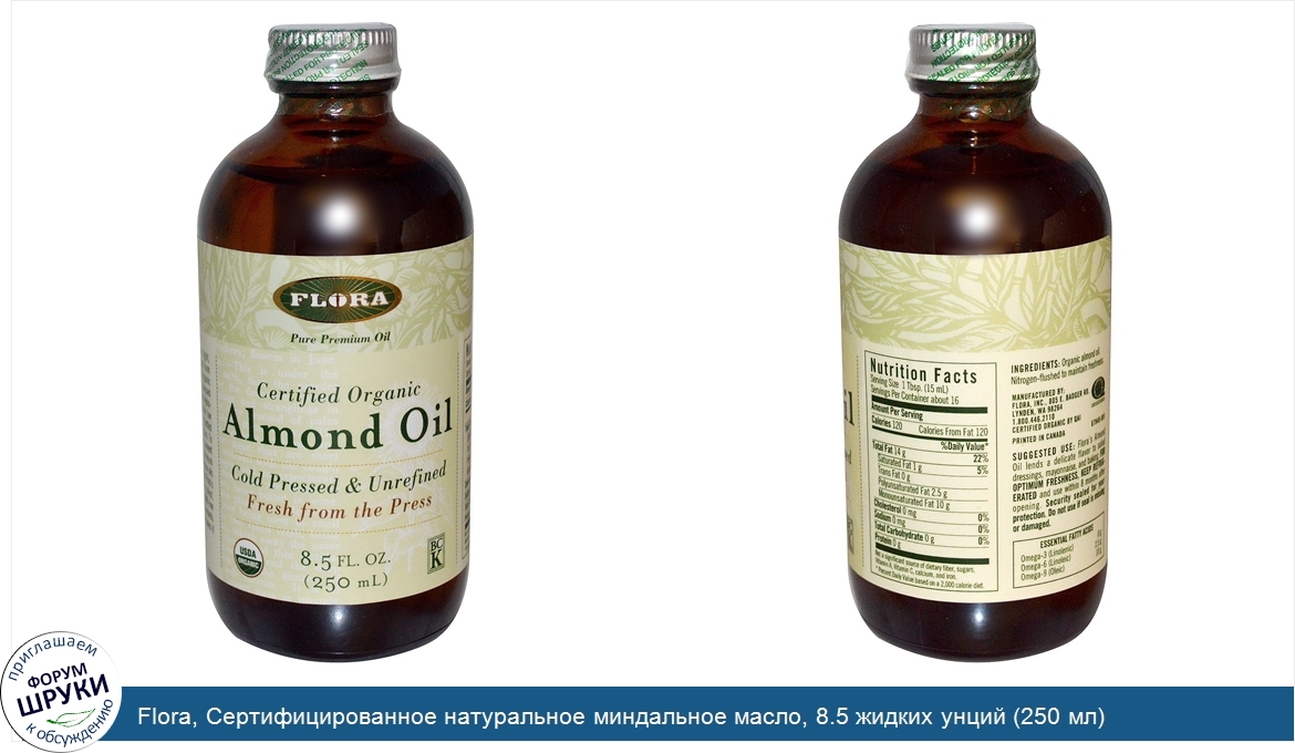 Друзья, если у вас есть отзыв/дополнение/комментарий/вопрос относительно Flora, Сертифицированное натуральное миндальное масло, 8.5 жидких унций (250 мл) - напишите его ответом в эту тему (это будет полезно всему сообществу в целом и вам в отдельности).