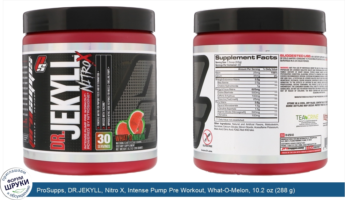 Друзья, если у вас есть отзыв/дополнение/комментарий/вопрос относительно ProSupps, DR.JEKYLL, Nitro X, Intense Pump Pre Workout, What-O-Melon, 10.2 oz (288 g) - напишите его ответом в эту тему (это будет полезно всему сообществу в целом и вам в отдельности).