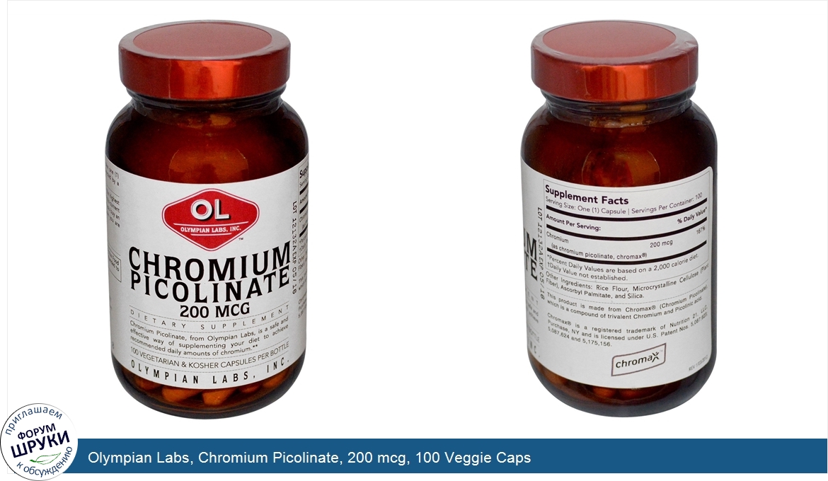 Друзья, если у вас есть отзыв/дополнение/комментарий/вопрос относительно Olympian Labs, Chromium Picolinate, 200 mcg, 100 Veggie Caps - напишите его ответом в эту тему (это будет полезно всему сообществу в целом и вам в отдельности).