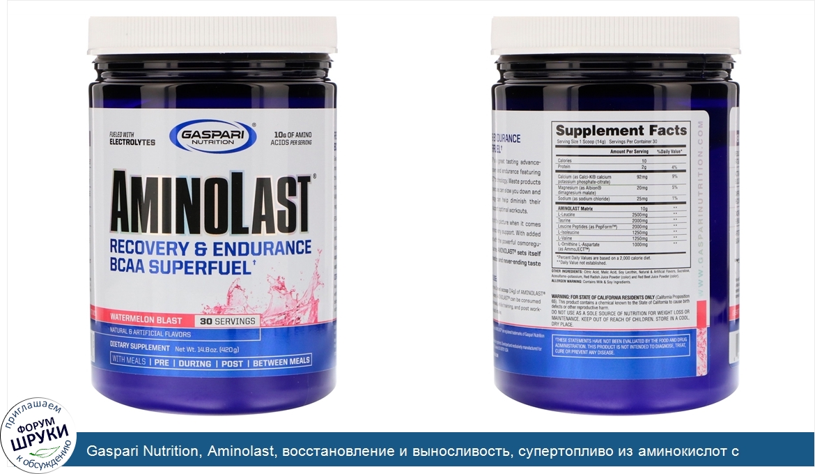 Друзья, если у вас есть отзыв/дополнение/комментарий/вопрос относительно Gaspari Nutrition, Aminolast, восстановление и выносливость, супертопливо из аминокислот с разветвленной цепью, арбузный взрыв, 420 г - напишите его ответом в эту тему (это будет полезно всему сообществу в целом и вам в отдельности).