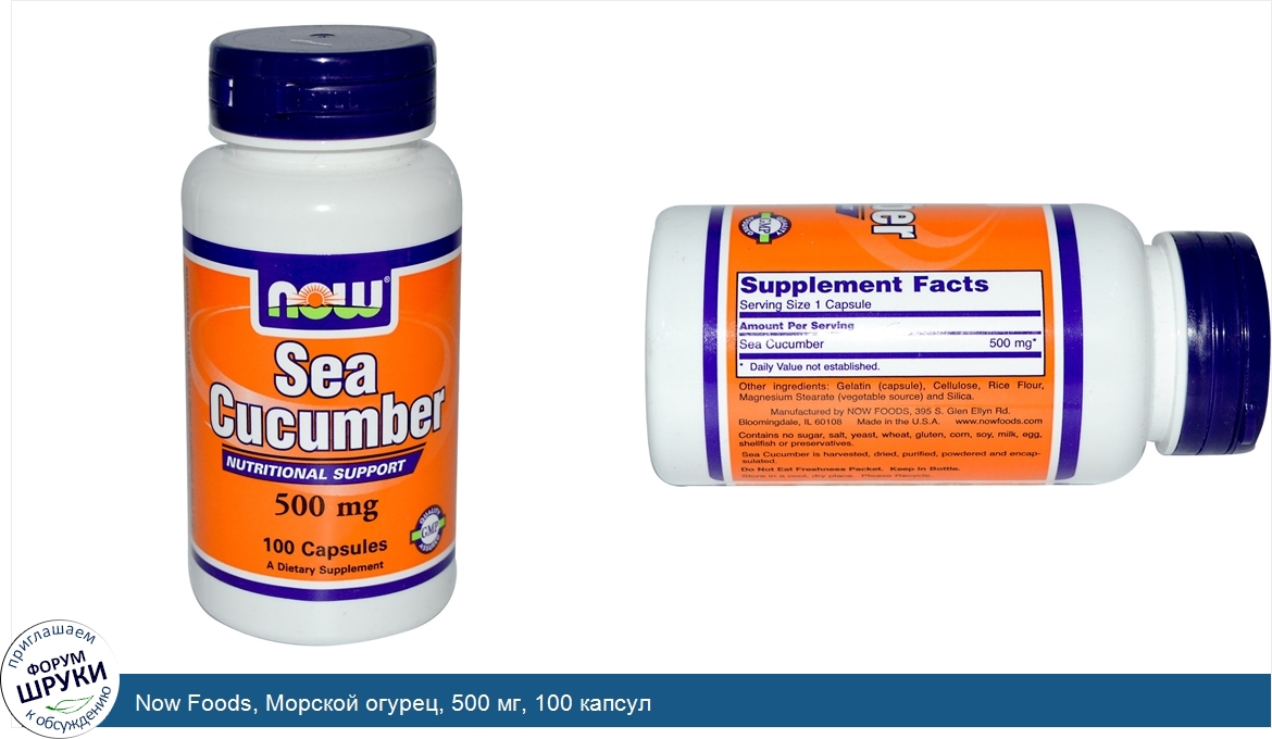 Now Foods, Морской огурец, 500 мг, 100 капсул