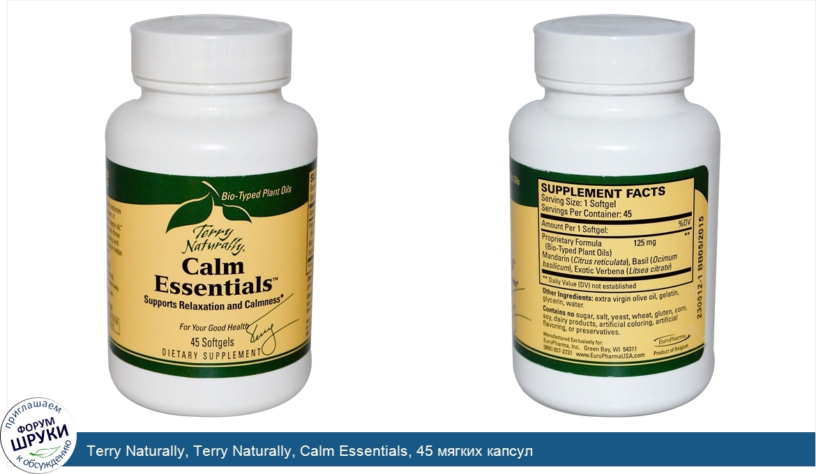 Друзья, если у вас есть отзыв/дополнение/комментарий/вопрос относительно Terry Naturally, Terry Naturally, Calm Essentials, 45 мягких капсул - напишите его ответом в эту тему (это будет полезно всему сообществу в целом и вам в отдельности).