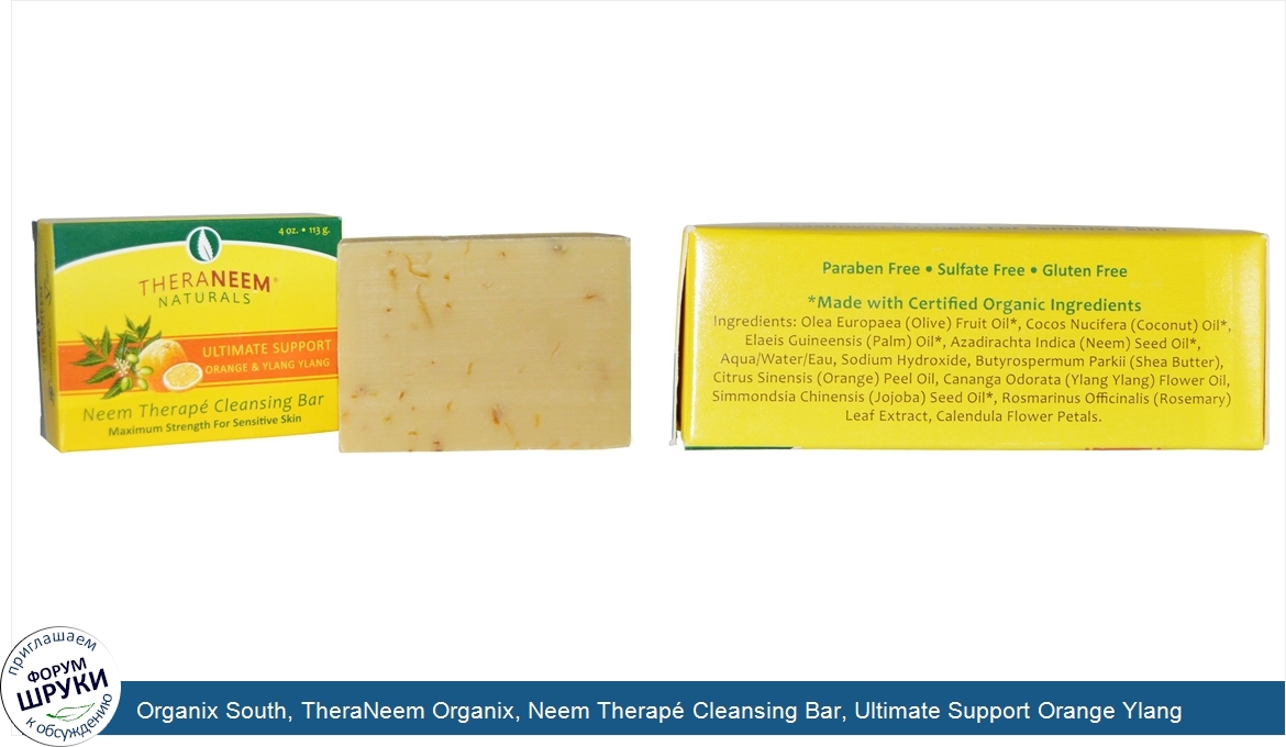 Organix South, TheraNeem Organix, Neem Therapé Cleansing Bar, Ultimate Support Orange Ylang Ylang, 4 oz (113 g)