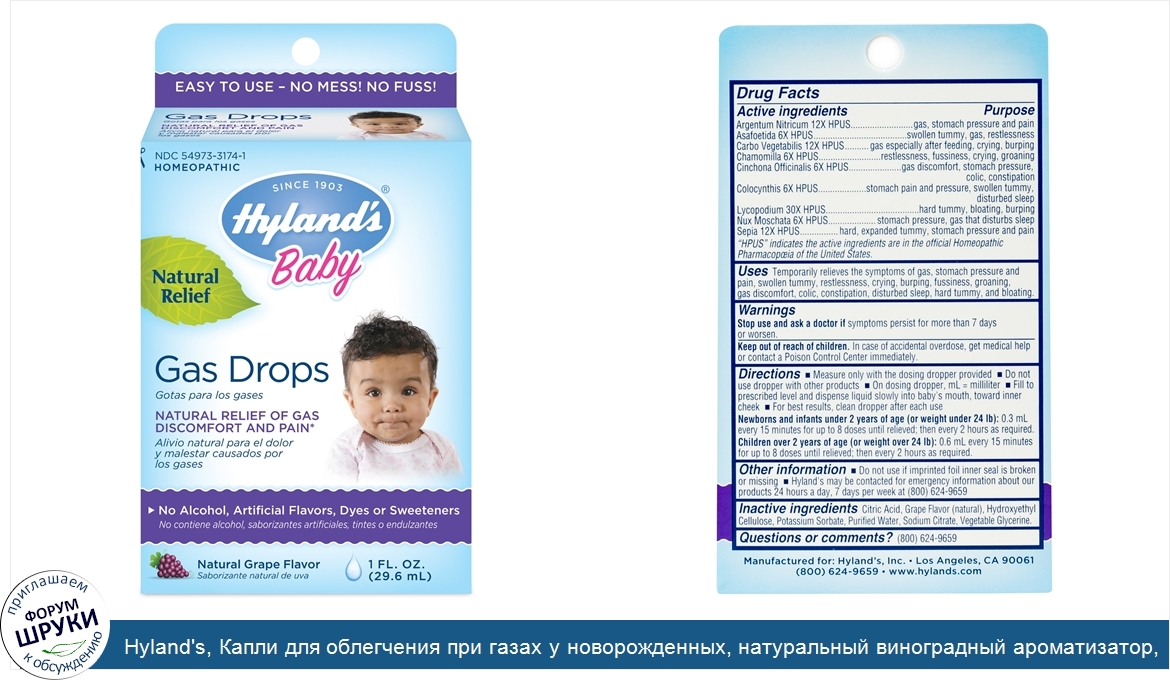 Друзья, если у вас есть отзыв/дополнение/комментарий/вопрос относительно Hyland's, Капли для облегчения при газах у новорожденных, натуральный виноградный ароматизатор, 1 жидкая унция(29,5 мл) - напишите его ответом в эту тему (это будет полезно всему сообществу в целом и вам в отдельности).