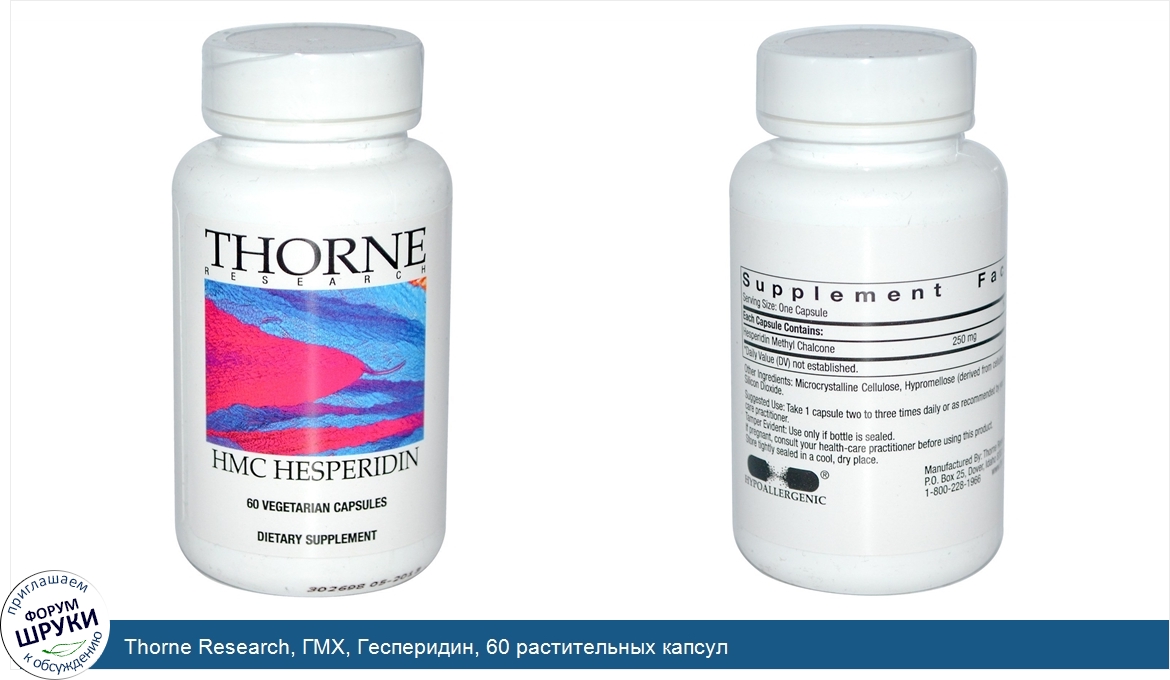 Thorne Research, ГМХ, Гесперидин, 60 растительных капсул