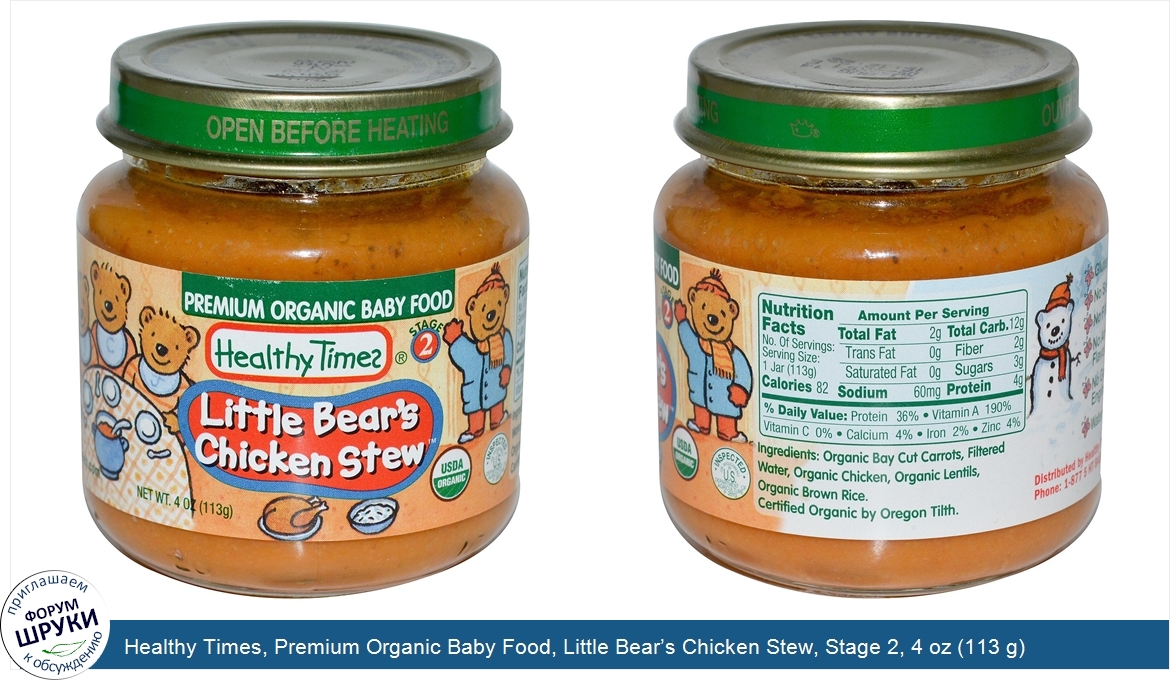 Друзья, если у вас есть отзыв/дополнение/комментарий/вопрос относительно Healthy Times, Premium Organic Baby Food, Little Bear’s Chicken Stew, Stage 2, 4 oz (113 g) - напишите его ответом в эту тему (это будет полезно всему сообществу в целом и вам в отдельности).