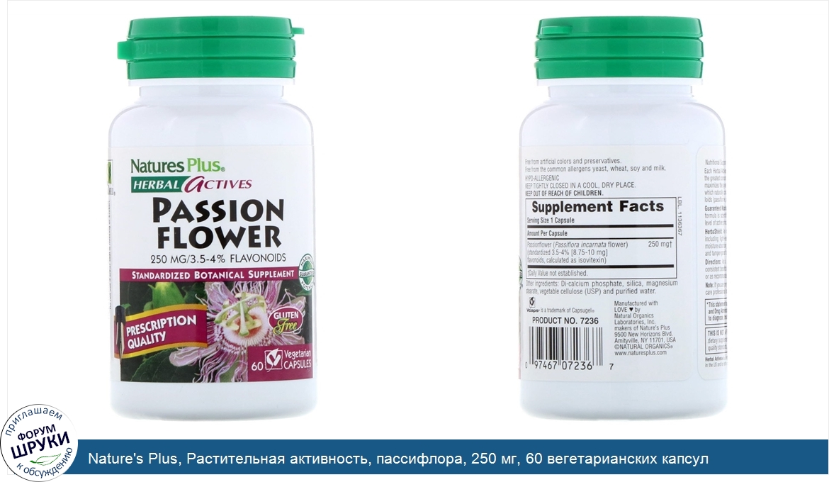 Друзья, если у вас есть отзыв/дополнение/комментарий/вопрос относительно Nature's Plus, Растительная активность, пассифлора, 250 мг, 60 вегетарианских капсул - напишите его ответом в эту тему (это будет полезно всему сообществу в целом и вам в отдельности).