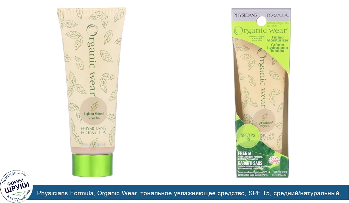 Physicians Formula, Organic Wear, тональное увлажняющее средство, SPF 15, средний/натуральный, 1,5 жидких унций (44 мл)
