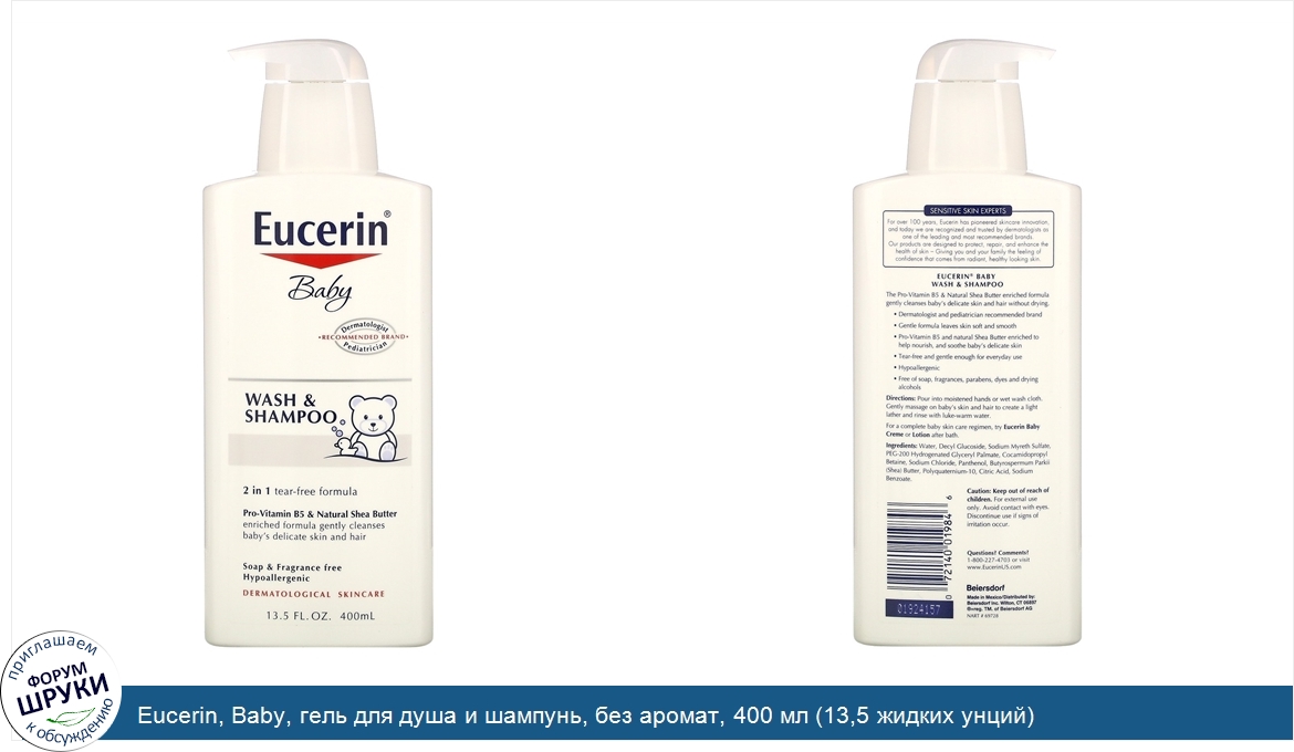 Друзья, если у вас есть отзыв/дополнение/комментарий/вопрос относительно Eucerin, Baby, гель для душа и шампунь, без аромат, 400 мл (13,5 жидких унций) - напишите его ответом в эту тему (это будет полезно всему сообществу в целом и вам в отдельности).