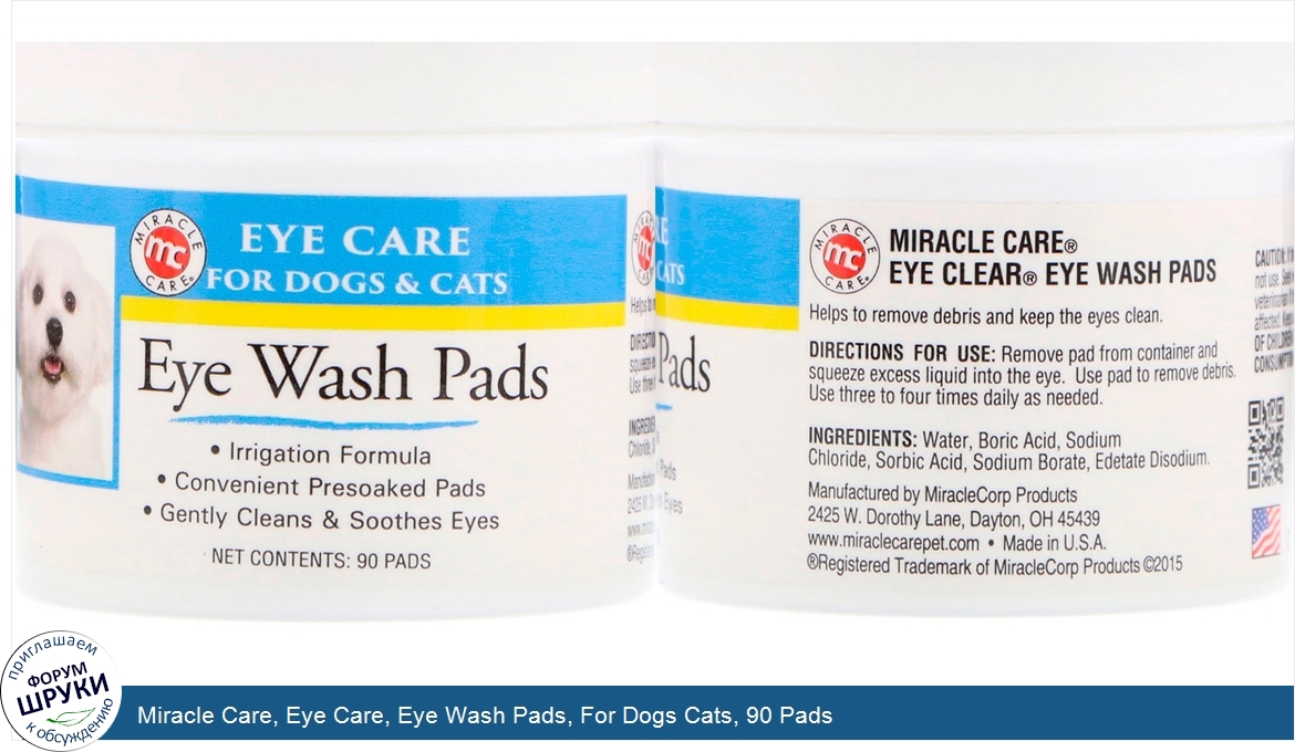 Друзья, если у вас есть отзыв/дополнение/комментарий/вопрос относительно Miracle Care, Eye Care, Eye Wash Pads, For Dogs Cats, 90 Pads - напишите его ответом в эту тему (это будет полезно всему сообществу в целом и вам в отдельности).