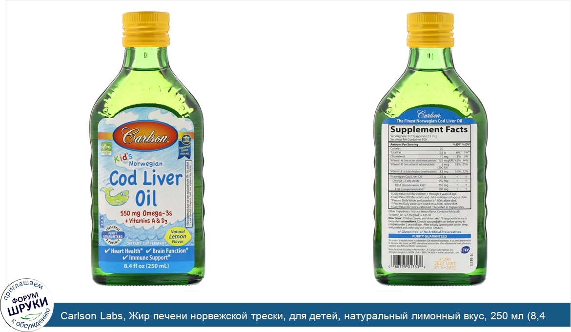 Друзья, если у вас есть отзыв/дополнение/комментарий/вопрос относительно Carlson Labs, Жир печени норвежской трески, для детей, натуральный лимонный вкус, 250 мл (8,4 жидкой унции) - напишите его ответом в эту тему (это будет полезно всему сообществу в целом и вам в отдельности).
