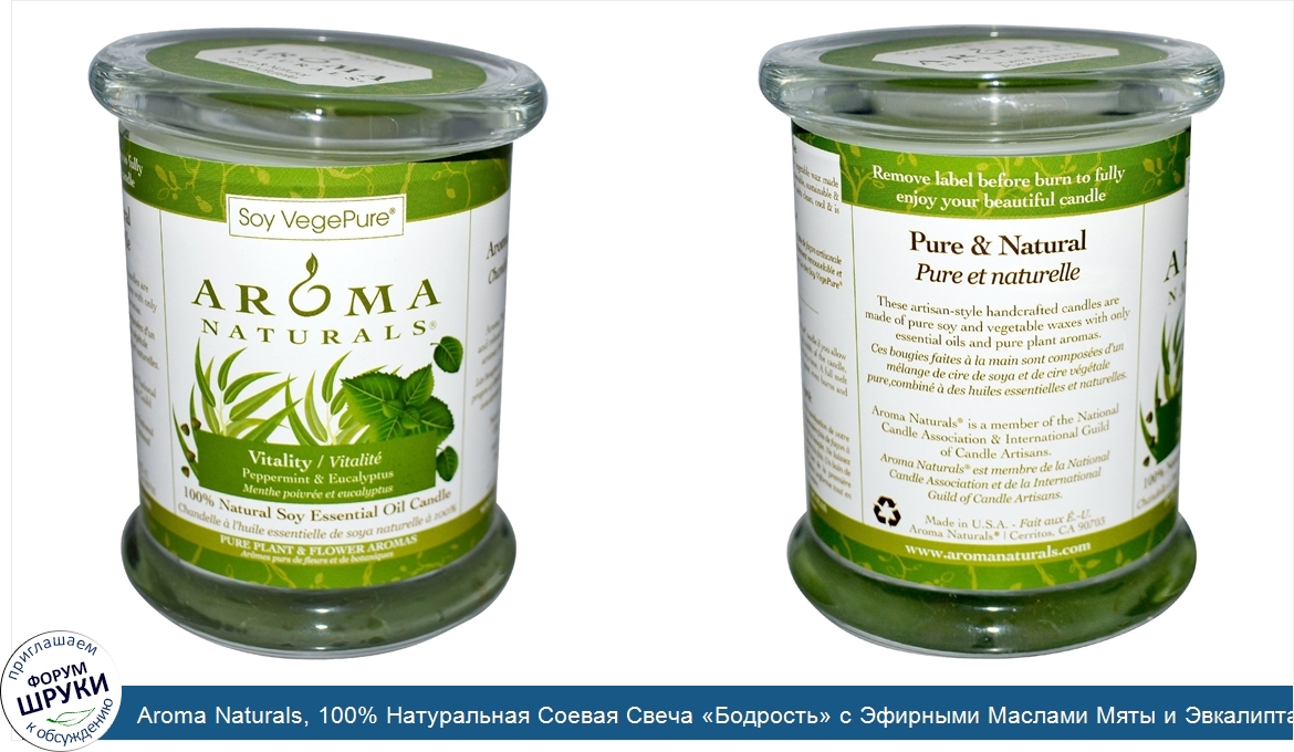 Друзья, если у вас есть отзыв/дополнение/комментарий/вопрос относительно Aroma Naturals, 100% Натуральная Соевая Свеча «Бодрость» с Эфирными Маслами Мяты и Эвкалипта, 8.8 унций (260 г) - напишите его ответом в эту тему (это будет полезно всему сообществу в целом и вам в отдельности).