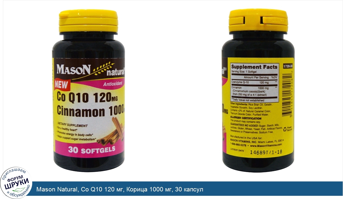 Друзья, если у вас есть отзыв/дополнение/комментарий/вопрос относительно Mason Natural, Co Q10 120 мг, Корица 1000 мг, 30 капсул - напишите его ответом в эту тему (это будет полезно всему сообществу в целом и вам в отдельности).
