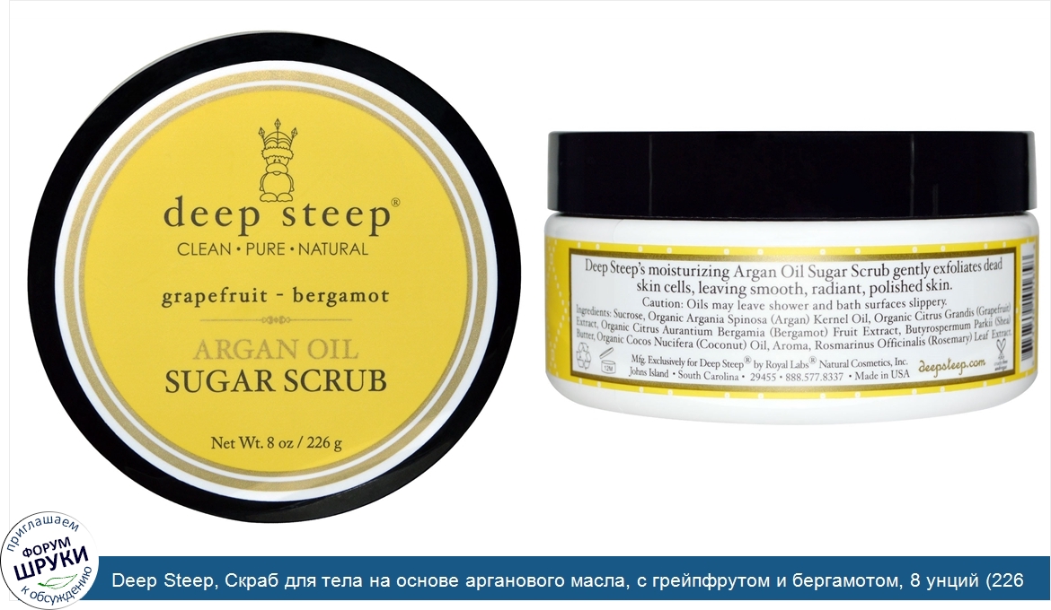 Друзья, если у вас есть отзыв/дополнение/комментарий/вопрос относительно Deep Steep, Скраб для тела на основе арганового масла, с грейпфрутом и бергамотом, 8 унций (226 г) - напишите его ответом в эту тему (это будет полезно всему сообществу в целом и вам в отдельности).