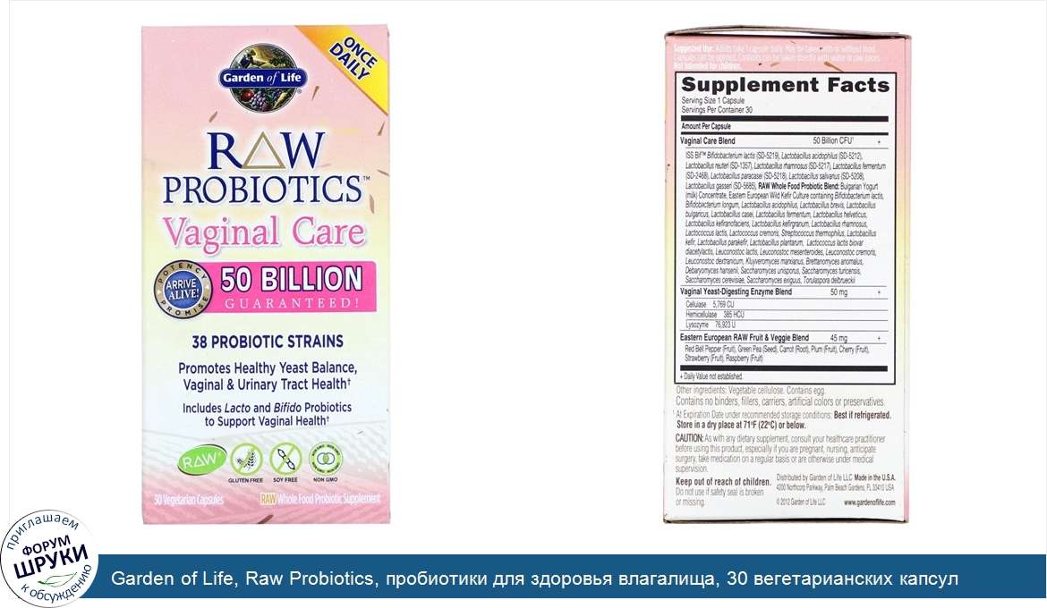Друзья, если у вас есть отзыв/дополнение/комментарий/вопрос относительно Garden of Life, Raw Probiotics, пробиотики для здоровья влагалища, 30 вегетарианских капсул - напишите его ответом в эту тему (это будет полезно всему сообществу в целом и вам в отдельности).