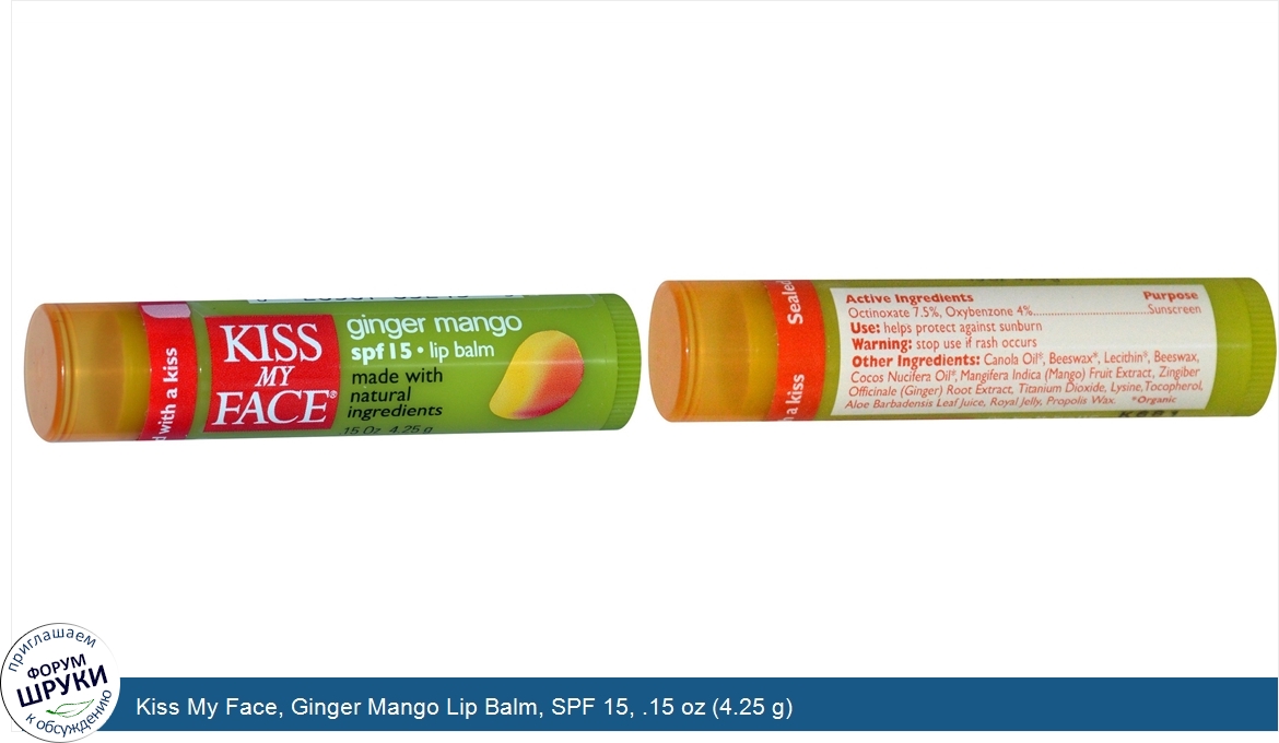 Друзья, если у вас есть отзыв/дополнение/комментарий/вопрос относительно Kiss My Face, Ginger Mango Lip Balm, SPF 15, .15 oz (4.25 g) - напишите его ответом в эту тему (это будет полезно всему сообществу в целом и вам в отдельности).